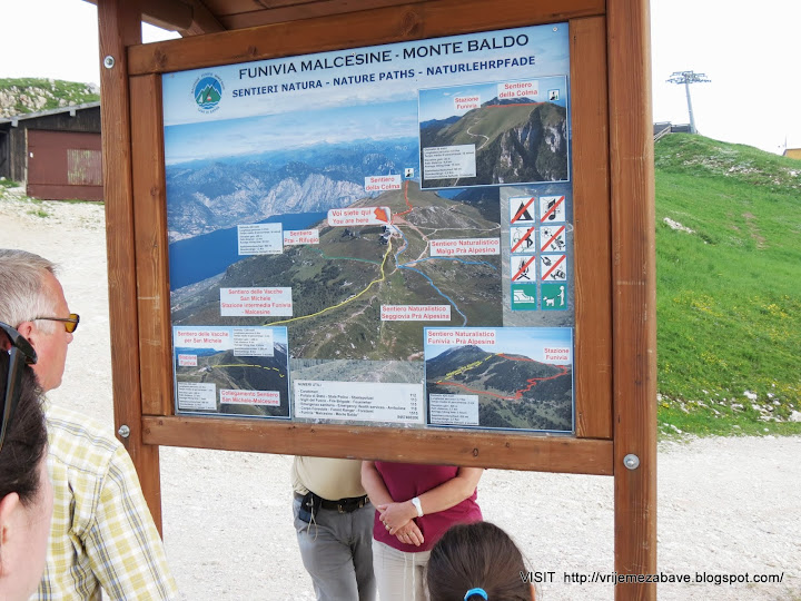 The summit is reachable through a cable car from the nearby town of Malcesine, lying on the Lake Garda.