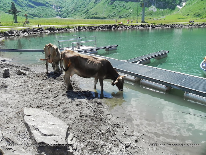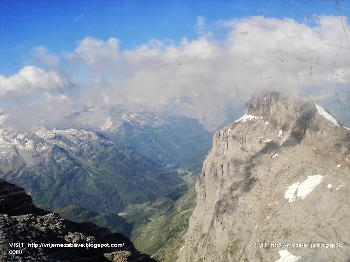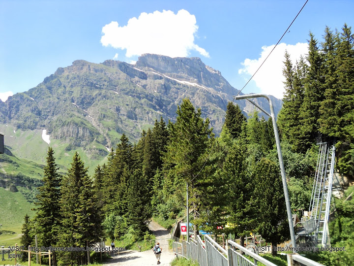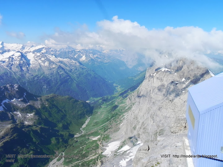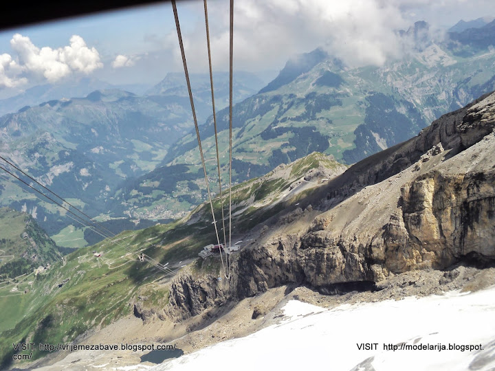 The last part of cable car way leads above the glacier. At Klein Titlis, it is possible to visit an illuminated glacier cave from an entrance within the cable-car station, which also includes shops and restaurants. The Titlis Cliff Walk, the highest elevation suspension bridge in Europe, opened in December 2012, giving views across the Alps.