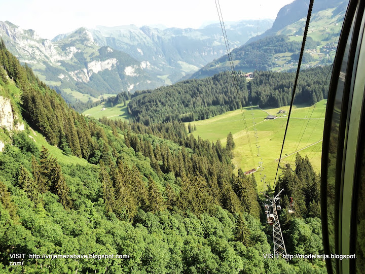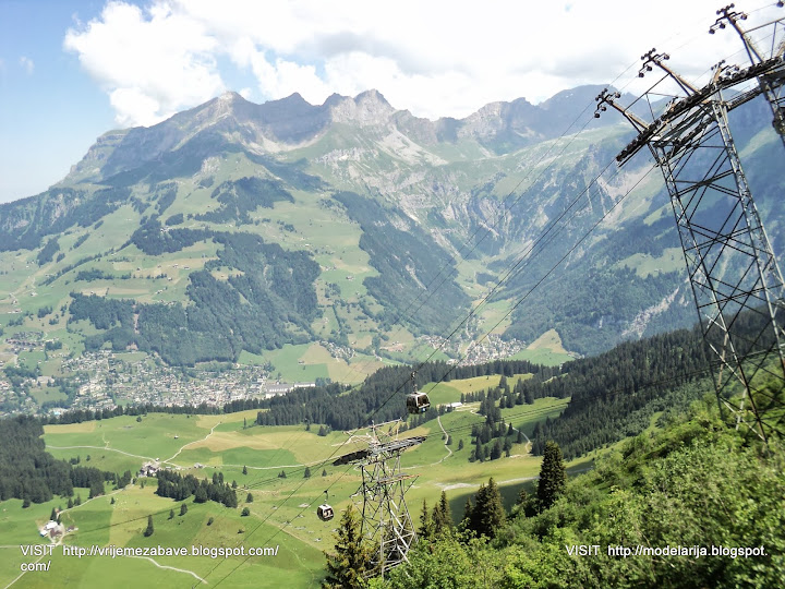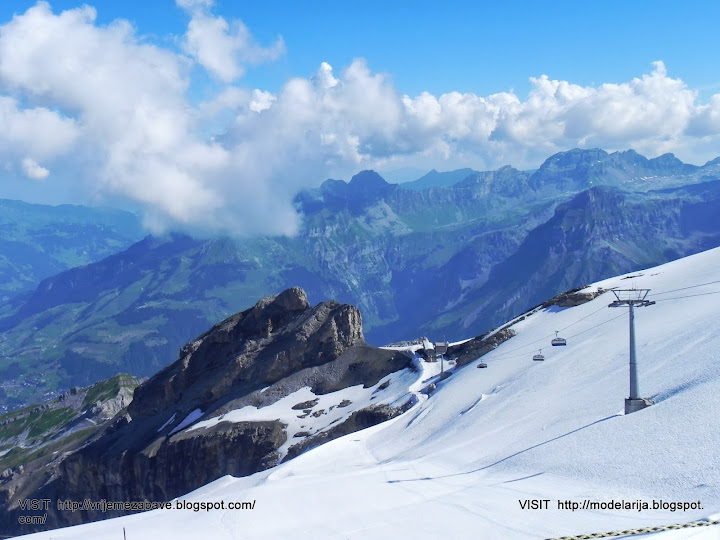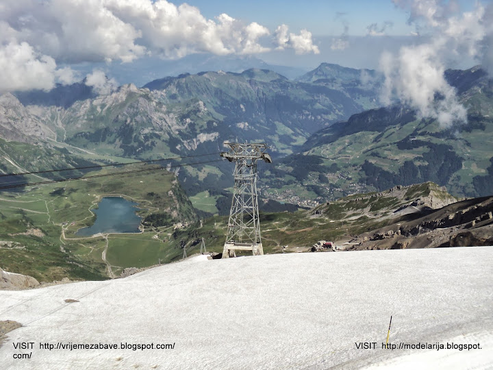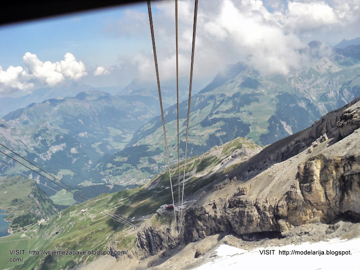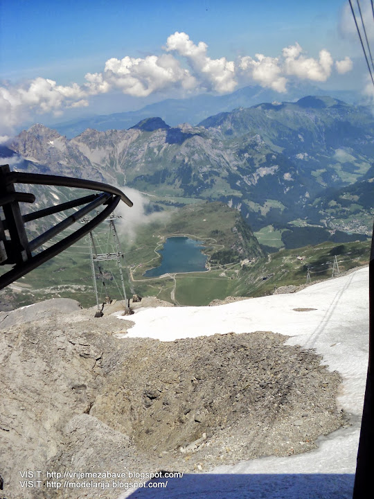 Mount Titlis (3,238 m) is a mountain in the Urner Alps of Switzerland. It is located on the border between the cantons of Obwalden and Berne in Switzerland, overlooking Engelberg (Obwalden) and is famous as the site of the world's first revolving cable car. The cable car system connects Engelberg to the summit of Klein Titlis (3,028 m) through the three stages of Gerschnialp (1,262 m), Trübsee (1,796 m) and Stand (2,428 m).